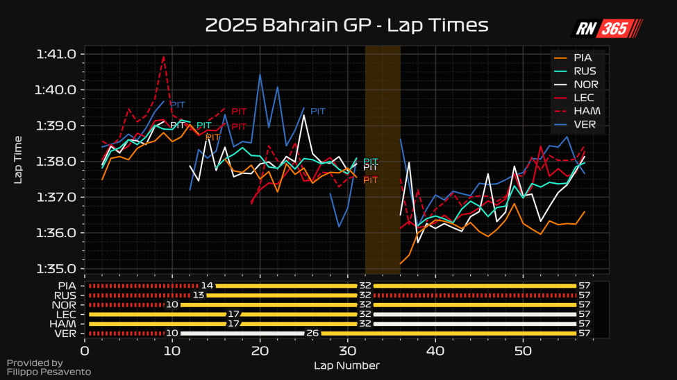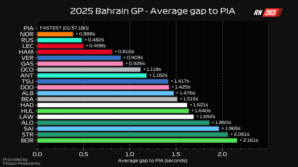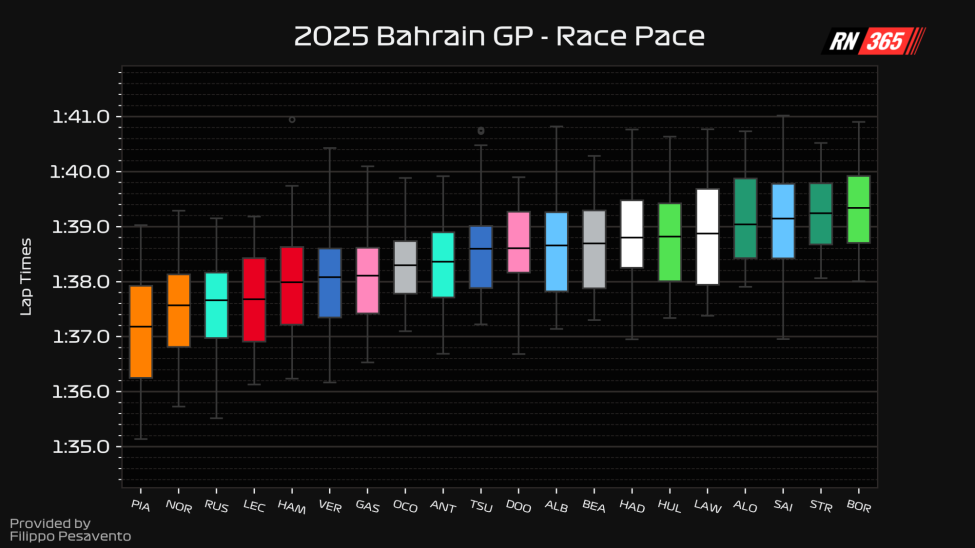 The race pace data from the Bahrain Grand Prix is below. The article continues thereafter.